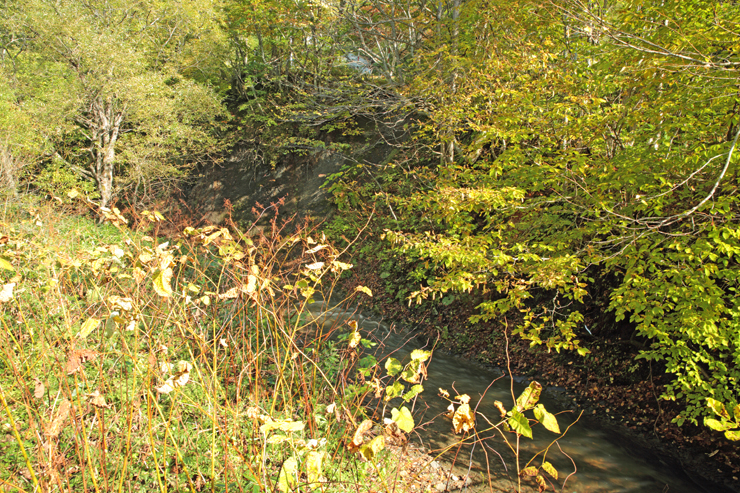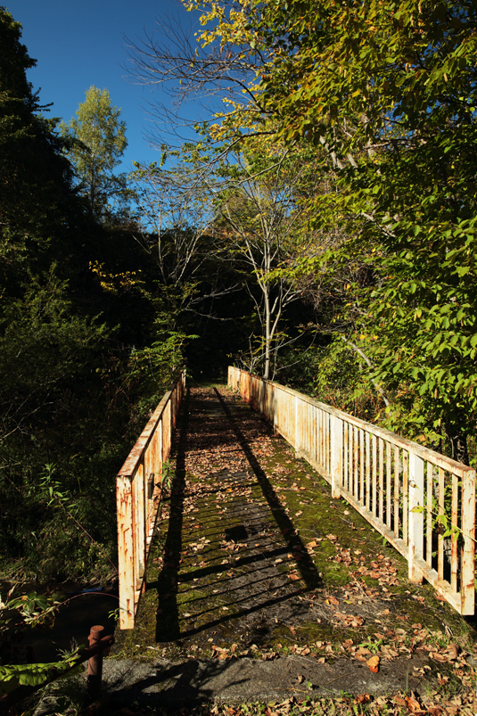 真谷地の入り口、真谷地橋、真っ黒い川が流れていたが今は清流