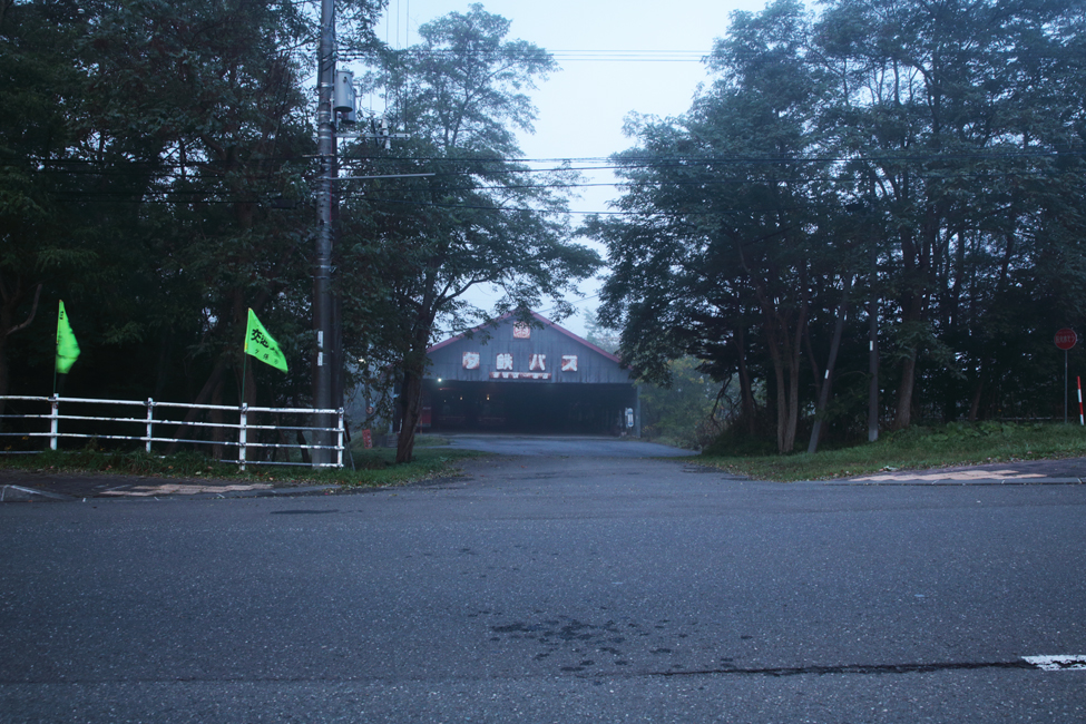 日吉を後にし真谷地に向かう途中、 まだ夜明け前の夕鉄バスの車庫