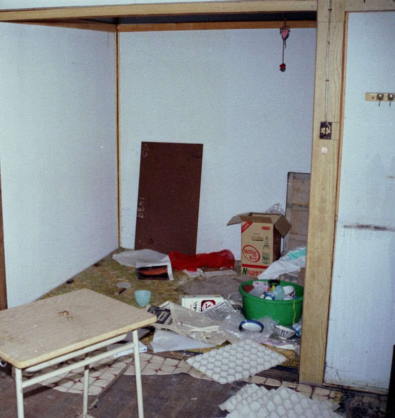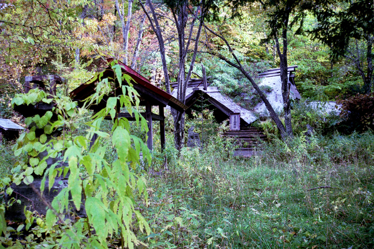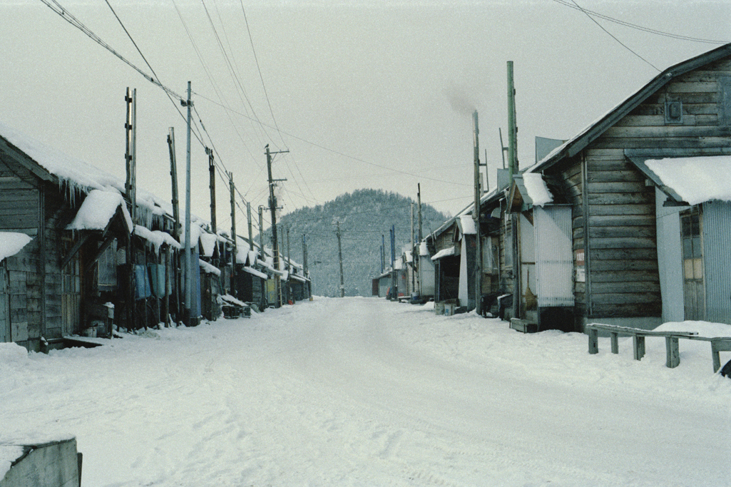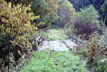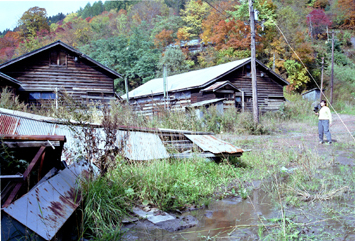 後ろには、3、4軒の2軒長屋が斜面に沿って並んでいた。